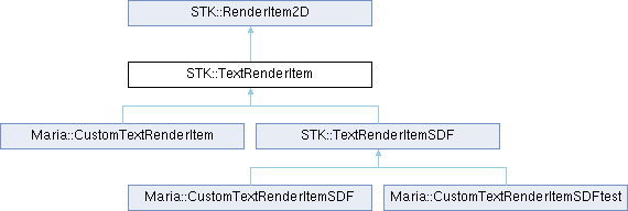 TextRenderItem - Rendering of an STK::TextItem. This class is used in conjunction with STK::GraphicsRender2D for efficient rendering of texts.